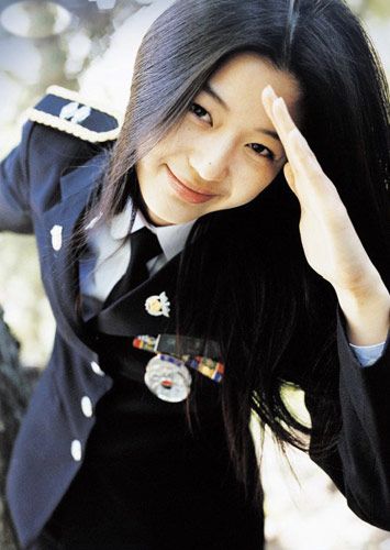 点评:深蓝的警服穿在全智贤身上真是英姿飒爽。她的警察LOOK不同于赵薇的警察LOOK是在于她没有那种本身的柔弱,更多的是一种“女王般”的气质。
