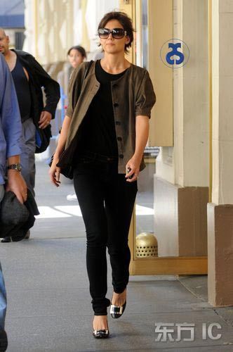 搭配点评:深咖啡色的娃娃装大气,配合整体的黑色装扮,甜美又帅气。