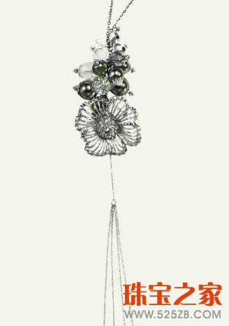 缕空雕花上连缀透明、银色珠子的流苏项链,要你戴出华贵气质。