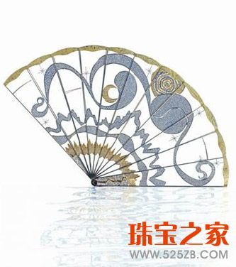 女士手扇以为钻石,K白金,K黄金和红色金制成