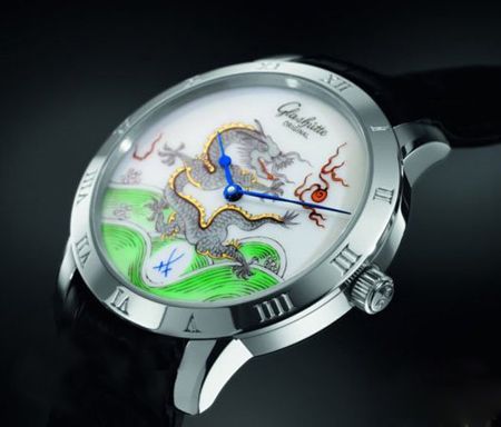 Dragon Wall九龙壁套表,全球仅限量九套,除了Meissen珐琅彩绘,更同时结合德意志机械工艺,每款腕表皆搭载Cal. 100自动上链机芯,18K白金质材。