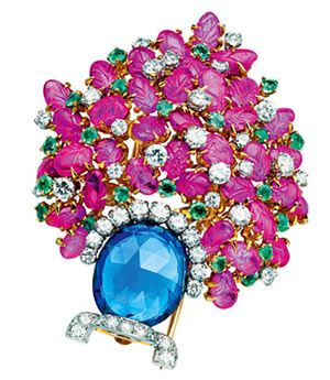 BVLGARI紫色宝石与蓝宝石镶嵌胸针