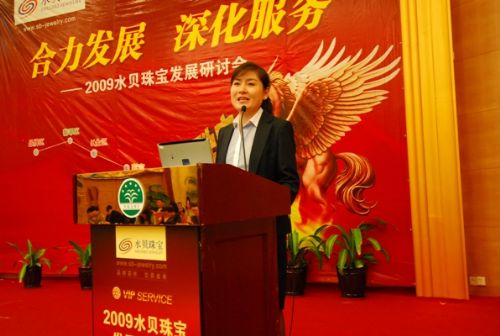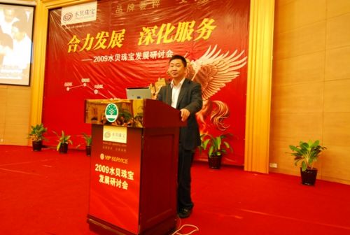 卢礼杭总裁首先在联谊会上向全体商户代表公布了2009年水贝珠宝各项经营管理及发展思路,并正式介绍了水贝珠宝深化服务的具体举措《水贝珠宝金钻服务体系》,引得阵阵掌声。