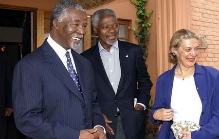 南非总统——塔博·姆贝基(Thabo Mbeki) 图左,与安南夫妇一起。