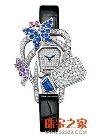 表壳:白金镶钻表壳,宝石镶嵌飞舞的蝴蝶