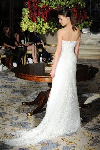 Douglas_Hannant 羽毛:随着裙摆的打开,羽毛的量也越来越大,如同白孔雀缓缓展开羽翼。
