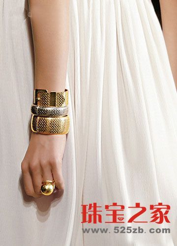 手链的层叠搭配,多采用相同或相近材质,比如叠戴多个款式的手镯,采用撞色的搭配叠戴,或者采用同色系、近似风格只是宽度不同的手镯叠戴,都会有很好的效果。手镯的叠戴比手链的叠戴更加方便,因为手链一般较为柔软,多款叠戴容易纠缠在一起,也很难显示出层次感。所以,手部的层叠搭配多以手镯的层叠为主。