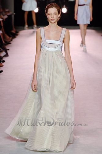 娃娃装只要在胸襟部份多一份设计,整件礼服的焦点就会全被设置在该部位,这件米灰白色的礼服也很适合婚宴来穿,气质隆重高雅,又不失可爱的小女人气质。