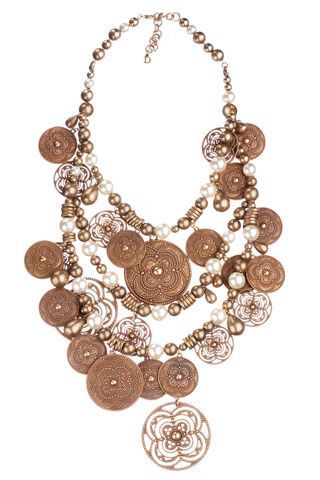 虽说是钱币造型,但决不是挂了一脖子铜钱的效果。Christian Dior 09 秋冬设计的灵感源自波斯细密画,主角是贵妇,她戴的首饰也是艺术品一般的精美。奢华、铺张,但毫不俗气。