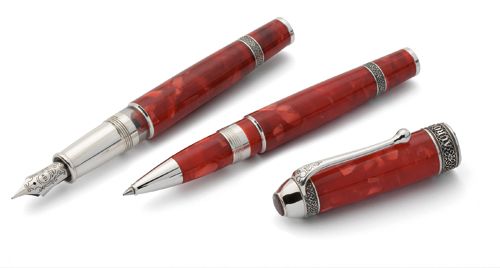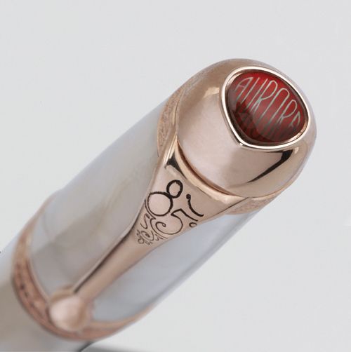 85年,对AURORA来说是意味着一个伟大的成就。它已成为了书写工具的一种象征和精彩生活的一种方式。此款85周年的庆典之笔是一件融入了AURORA(奥罗拉)悠久的历史和对未来独到理解的限量发行的真正珠宝。85周年纪念笔系列共有红色斑驳大理石树脂纯银笔身和珍珠母玫瑰金笔身两款设计。过去的纪念日系列被认为是一种遗产和为将来设计积累的经验。而此款新系列是献给那些永远热爱生命,勇于奋斗的人所创造的。红色班驳大理石树脂纯银款式有自来水笔和滚珠笔两个款式,自来水笔限量发行1919支,滚珠笔限量999支。唯一的系列编号被刻在笔帽环上,笔尖和笔环为925纯银,底部刻有AURORA传统的花纹图案。珍珠母玫瑰金笔身的这款自来水笔全球仅限量生产99支,极其珍贵。椭圆形笔头上镶有马赛克式图案,马赛克式标志由灰色珍珠母刻字和红珊瑚贴面组成,透镜部分由水晶制成。