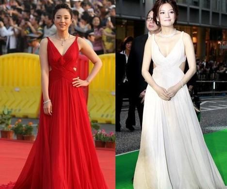 这个周末李冰冰带着《风声》闪耀韩国釜山电影节,周迅则借着金鸡奖力挫赵薇、章子怡等提名演员如愿封后,周迅成为最大赢家,赵薇则衰到了几点。不过赵薇的衰事似乎还没有结束,在东京国际电影节的绿毯上,赵薇史无前例的低胸爆乳却遭遇范冰冰绝杀,再次成为衰人。然而衰事并没有结束,因为赵薇在东京所穿礼服竟与董璇在金鸡红毯上的一模一样,除了颜色不同之外,而从效果来看,更加年轻、性感的董璇似乎更加妩媚骄人。这个周末赵薇真的衰到了极点!