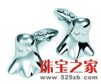 鬼魂造型袖扣,白金袖扣镶有4颗白钻,共重0.40克拉。