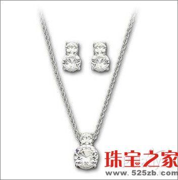 这个套装有一个华丽的链坠,配以两颗透明水晶,反射出奇妙的光影变化。配套的一对穿孔耳环各有两颗brilliant-cut透明水晶。组成一个经典套装。