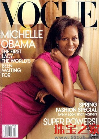 米歇尔-奥巴马是美国历史上第二位登上《VOGUE》杂志封面的第一夫人。第一个为1998年12月版的Hillary Clinton。而2008年的VOGUE韩国版10月封面女郎则是现任法国第一夫人Carla Bruni,不知为何没有把她算上呢,估计只能算上原配第一夫人吧。事实上,米歇尔-奥巴马在外事活动中的形象的确比这位前超级名模更胜一筹,当然这也与其丈夫的国际形象有关了,人们还是比较能够接受家庭和睦,又能成为丈夫有力支柱的女性身上找到安全感。