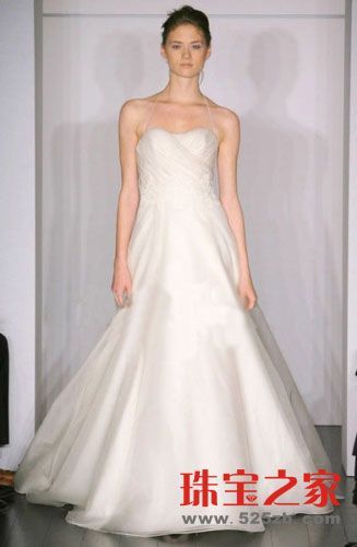 通过婚纱礼服反映的欣喜心情,可能带有光泽而薄透的面料就是理想的选择了,薄纱、charmeuse软缎、透明硬纱材质的婚纱礼服在春夏季婚礼上将大放异彩。当你走上婚礼红毯,和风轻轻吹起薄纱礼服,让你风情万千,也可以选择细肩带的带圆点的丝光棉礼服,它很适合春、夏季的户外婚礼。