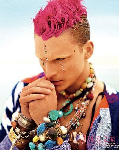 来自最新出版的《Vogue Hommes Japan》2010春夏刊的大片,由摄影师Mariano Vivanco掌镜,Nicola Formichetti造型,Ford模特经纪公司旗下男模Alejandro Rodriguez演绎。本期搭配用色特别鲜艳饱和,配饰单品则充满着西亚风情。