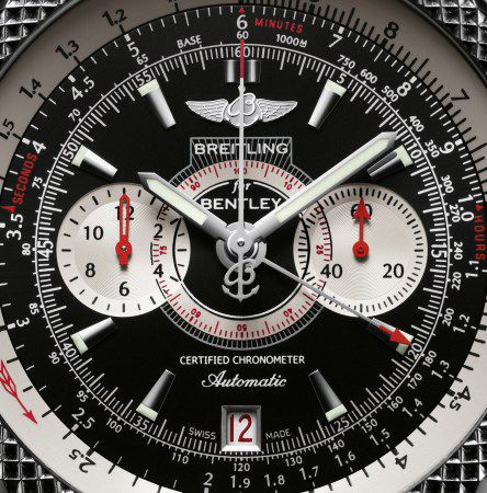机芯:百年灵机芯26B型,瑞士官方天文台认证中心(COSC)认证,自动上链机械机芯,高振频(每小时28800次),38粒宝石轴承。1/4秒,60分钟和中央12小时的累计器。