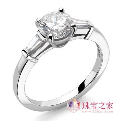 Griffe系列铂金钻戒,镶嵌圆形明亮切割钻石(规格自1克拉起)和两侧钻石(0.5克拉)