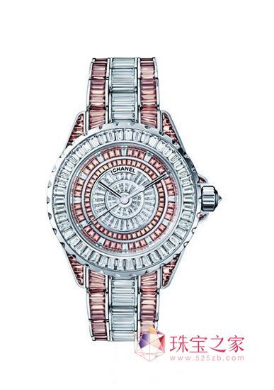 全球限量12只。18K白金。机械自动上链机芯。镶嵌425颗长阶梯形切割总重28克拉的钻石,及338颗长阶梯形切割总重14.5克拉的干邑色蓝宝石,共有33mm、38mm及42mm三种尺寸可供选择。
