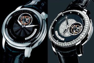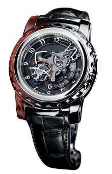 看这些陀飞轮表款,它们的陀飞轮装置,或装置在秒针之上,或者成为整个表盘,完全颠覆了我们对于那个“小笼子”的传统定义。所以说特殊结构陀飞轮是少有的杰出制表师对于陀飞轮的新解,可以说在价值观方面都有了新的概念。一定要有噱头,或者说独特性,成为这些陀飞轮的设计初衷。在功能和作用上它基本还未出原貌,但如何把这个东西做在秒针及你想不到的地方,这绝对是敢为天下先的勇气。
