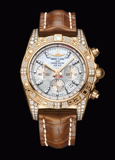 Breitling(百年灵)于2009年春季推出该系列钻石手表,Chronomat houses Caliber 01这款高性能自动上发条机芯腕表完全是在Breitling工作室自主开发和生产的。完美融合了力量与优雅,使这款手表一跃成为机械计时领域的新基准。
