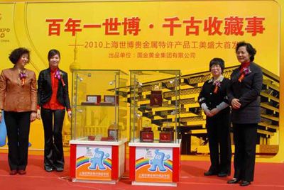 世博期间,国金黄金集团出品的十余款世博贵金属精品在王府井工美大厦隆重上市。这也是自北京王府井工美大厦上海世博特许商品旗舰店开业以来,首次出现十余款贵金属特许产品集中上市,为即将到来的上海世博盛大开园献上一份厚礼。世博局和中国黄金协会相关领导出席首发活动。