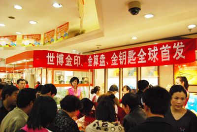 无处不世博,王府井大街陷入一片欢乐的海洋。上海世博局授权,国金黄金集团出品十几个系列,上百种规格的世博金银特许商品今日在这里首发。民族金银让世界开眼,传承中国传统文化的这些世博特许贵金属产品通过世博走向了世界!