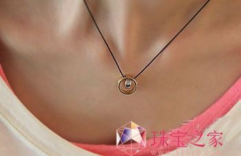 喜欢简单简洁的姐妹们一定会喜欢这款的设计,圆环中镶嵌的钻石更具光彩,选择用一条黑色的绳子做链,抛弃了贵气与耀眼的光彩,突显的是休闲而细致的美感。