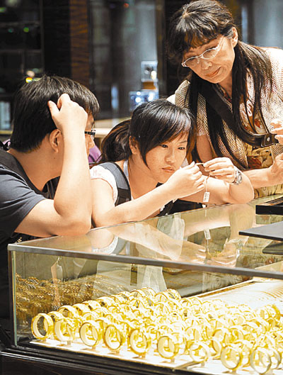 “过年时,人们喜欢穿一些颜色鲜艳的服饰,此时,选择色彩丰富又艳丽的珠宝饰品与之搭配,可以在很大程度上提升人气,增添魅力指数,二者相得益彰。所以,我为自己买了一款色彩饱满的红宝石吊坠,希望新一年的生活会红红火火。”刚刚走出珠宝专柜的白领丽人严艳对记者说。的确,色彩斑斓的珠宝饰品能够烘托春节隆重和喜庆的气氛。据销售人员介绍,自元旦以来,除了“中国红”深受喜爱外,黄金的“富贵黄”也是众多市民热捧的颜色。“黄金摆件摆在家里,能增加整个家庭的富贵之气,长期持有,还具有较高的投资和收藏价值。