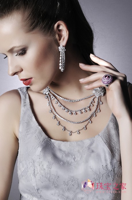 18K白金项链,镶嵌623颗圆形美钻(约重39.84克拉)及13颗梨形切割钻石(约重9.25克拉)