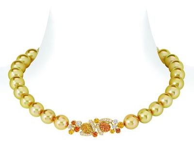Lune-de-Miel-18K黄金珍珠项链,镶有钻石、橙色及黄色蓝宝石