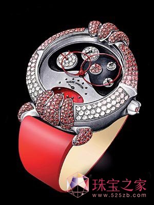 腕上红光:非常精巧的三问报时,与密布在表盘上石,给了女装表贴心有趣的专的红色宝又奢华又属风格。