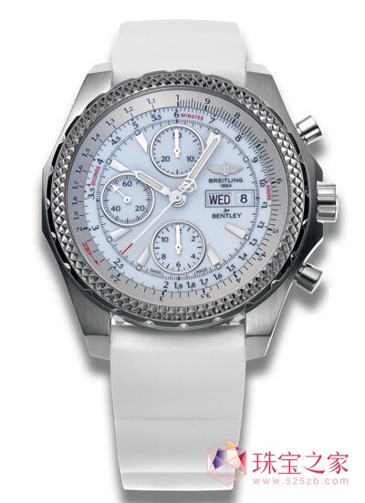身形魁梧的Breitling Bentley自动计时系列,说它们是运动健将没人会存疑半分,但和斯文优雅却好像沾不上边。看这一只近乎是纯白色的作品GT Racing Ice,却发现大块头也可以含蓄温柔。白底色黑刻度的对照,让阅读倍感清晰。6、9、12三个小表盘镶了金属线框,表盘更加立体浮凸。传统计时布局配传统3时位星期日历,但可旋转表环带动的斜缘却印着一点儿也不传统的可变测速环形滑尺。不锈钢表身配纯白橡胶表带。除了好白色的男生,应该也适合外向的女生。