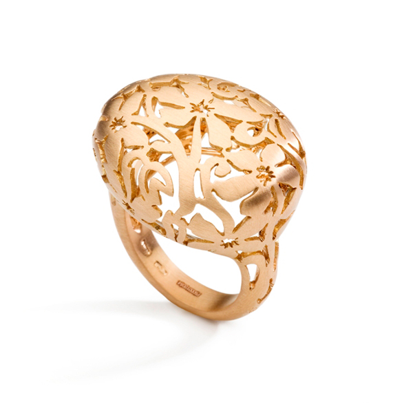 镂空透雕是POMELLATO宝曼兰朵将东方异域风情与意式珠宝工艺相碰撞而产生的火花,它一改金饰原本不透明的特质,让光芒透过镂空在肌肤上绽放出多多绚烂的花朵、错落有致的光影、和一段段美满的故事。