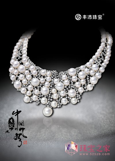 “瀑布”的设计灵感源于大自然的瀑布,作品运用18K白金+白珠+白钻三种元素搭配,营造出纯净的白色意境,大小不一的珍通过微镶、爪镶等工艺汇聚一起,形成一幕气势宏大的珍珠瀑布,给人奢华震撼的美感。