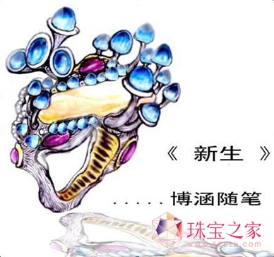 达人热评:姜小墨的作品再次被同一个达人选中,不得不叹服她的设计功底,原以为这色泽是祖母绿,但却用了翡翠,如果是翡翠,那她把翡翠一贯低吟浅唱的妩媚,玩出了现代而奔放的气息,而缠绵一名的冠之,多了许多柔情在其中,让你最想不到的还有,她是一枚戒指。