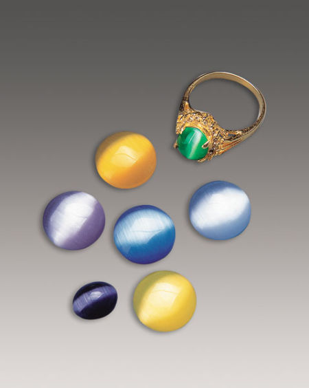猫眼,是特指具有猫眼效应的金绿宝石,颜色丰富,如蜜黄、黄绿、褐绿、黄褐、褐色等。在所有宝石中,具有猫眼效应的宝石品种很多,但只有金绿宝石猫眼才能真正称呼为“猫眼”。这种宝石晶体中平行分布的管状包裹体在加工成弧面形宝石后,能对光产生集中反射,出现一条像猫眼“瞳眸”一样的光带,转动猫眼宝石时,光带一开一合,酷似猫的眼睛,因此得名。由于最好的猫眼产于斯里兰卡,故旧称“锡兰猫眼”。