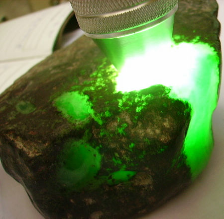灯下不观色 其实,任何珠宝都不应当在灯下进行颜色的质量评定。而对于翡翠来说,这一点则显得尤为重要。这是因为翡翠的颜色,尤其是闪灰,闪蓝以及油青之类的翡翠颜色,在灯光下的视觉效果要比自然光线下的颜色效果好很多。因此,灯光下只能看翡翠的绺裂,看水头长短,看照映程度或其它特征。而要在自然光线下,察看和评定翡翠的绿色。色差一等,价差一倍,对于高档的翡翠来说,价差一倍恐怕还不止。例如:一粒50万元的翡翠戒面与一粒100万元的翡翠戒面,翡翠质量样式、大小、种水、瑕疵都是一等一的,无可挑剔,二者之间的价格差别关键在于绿色上的高低。而如何认识和区分翡翠绿色的各种差别是极为重要的,至少也要见过和经历过。