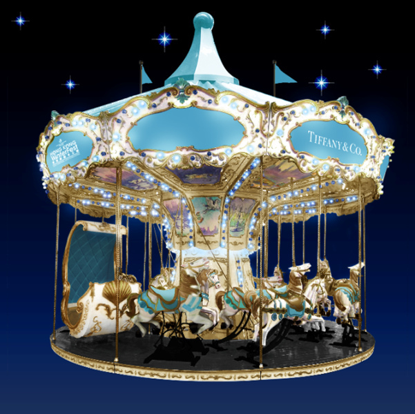 香港中环皇后像广场内的大小布置,均用上经典的 Tiffany Box 所组成,处处流露着 Tiffany & Co. 的迷人魅力;而矗立于广场中的18米高圣诞树,更挂上了多款动物造型的吊饰,充满着奇幻感觉。梦幻般的旋转木马,加上全城各处华丽的圣诞彩灯,让香港变得炫目。“A Holiday of Tiffany Treasures” 圣诞活动将于 2012 年 1 月 1 日闭幕。