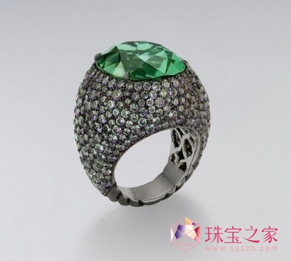 另一佳作为独一无二的绿宝石配彩色石榴石手镯 (Emerald and Color-Change Garnet Mosaic Cuff):44颗重49.46克拉的哥伦比亚绿宝石与47.4克拉的石榴石美得叫人屏息:钛金属及纯银托底,锯齿图案造形同样是David Yurman的经典设计元素,熨贴的手镯弧度将每颗宝石的光华及净度发挥得淋漓尽致;零售价为港币107万元。