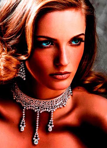 镶嵌1095颗圆形美钻 (约重28.15克拉) 、48颗梨型切割钻石 (约重6.72克拉) 及3颗梨型切割垂坠钻石 (约重8.6克拉)。