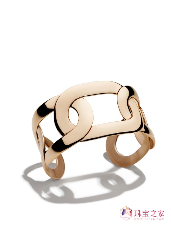 这款手镯来自Pomellato的Tango Gold系列,是以意大利国宝级手工艺打造纯金珠宝见长的系列。该款玫瑰金手镯由圆润平滑的阔大环扣联结而成,却不失女性独有的柔美气质,设计理念简洁大方、高雅时尚。