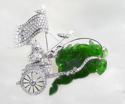 “旗开得胜”18K金镶嵌老坑翡翠胸针: