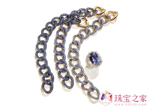 赤、橙、黄、绿、青、蓝、紫,11款高级珠宝珍品囊括了彩宝世界中的收藏典范:粉蓝宝、红色尖晶石、橘色石榴石、金丝雀黄碧玺、祖母绿、沙弗莱石、帕拉依巴碧玺(碧玺中的王者)、海蓝宝、蓝宝石、紫蓝宝和坦桑石。