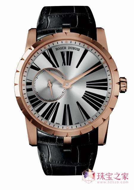 Excalibur 42mm玫瑰金自动上链腕表棱角分明,刚劲有力的特质仍然在张力十足的线条中一览无遗,彰显了现代都市男性独特纯粹的美感和决不妥协的精神。全新系列腕表凹槽表圈依然是此系列的经典特色,设计更加精致,42毫米直径玫瑰金表壳与带有阳光饰纹的缎面打磨几何表盘相得益彰,并与造型颀长的罗马数字形成鲜明对比。