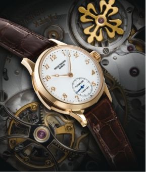 拍品编号2477。该款腕表在1993年首次推出,并于2011年停产。这款腕表具备三问和陀飞轮两大复杂功能,无与伦比的共鸣足以征服任何挑剔的收藏家。为了避免在日光下暴露过久影响精准度,百达翡丽选择将陀飞轮隐藏起来,而不是我们一般见到的呈现在表盘上。搭配18K黄金材质及经典的33毫米直径表壳,让人想起百达翡丽优雅的签名:the Calatrava 。精美的白色珐琅表盘,一如既往百达翡丽最干净线条,低调而优雅的审美。