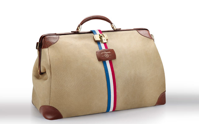 Humphrey Bogart 系列Vintage提袋灵感来自Humphrey Bogart于1947年向都彭(S.T. Dupont)订制的Bogie提袋,有复刻版的Bogie提袋与Cosie提袋可供选择。复刻版的Bogie包袋除了原有提袋的植物染色四角皮革与油蜡涂层防水帆布材质袋身,饰有以代表法国国旗的红、白、蓝帆布装饰之外,袋身比先前更加圆状些,袋身上的金属锁头以及中上方皮革点缀代表都彭(S.T. Dupont)的D字设计,复刻版Bogie大小适合日常使用。