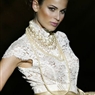 婚纱秀场上除了用层层的夸张褶皱和工序繁复的蕾丝来表达奢华外,金色也是本季最重要的配件选择,金色的腰带、饰品都令新娘多了几分华贵。
