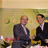 台湾“中华宝石协会”会长林嵩山(左)与云南省珠宝协会会长马罗矶(右)签订合作框架协议。