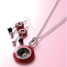大大小小的琉璃珠子,夺目的艳红,晶莹幻彩的洁白,配以高贵的珍珠和银质磨砂小球等点缀。耳环是专为无耳洞人士设计的可调节的夹式耳夹。